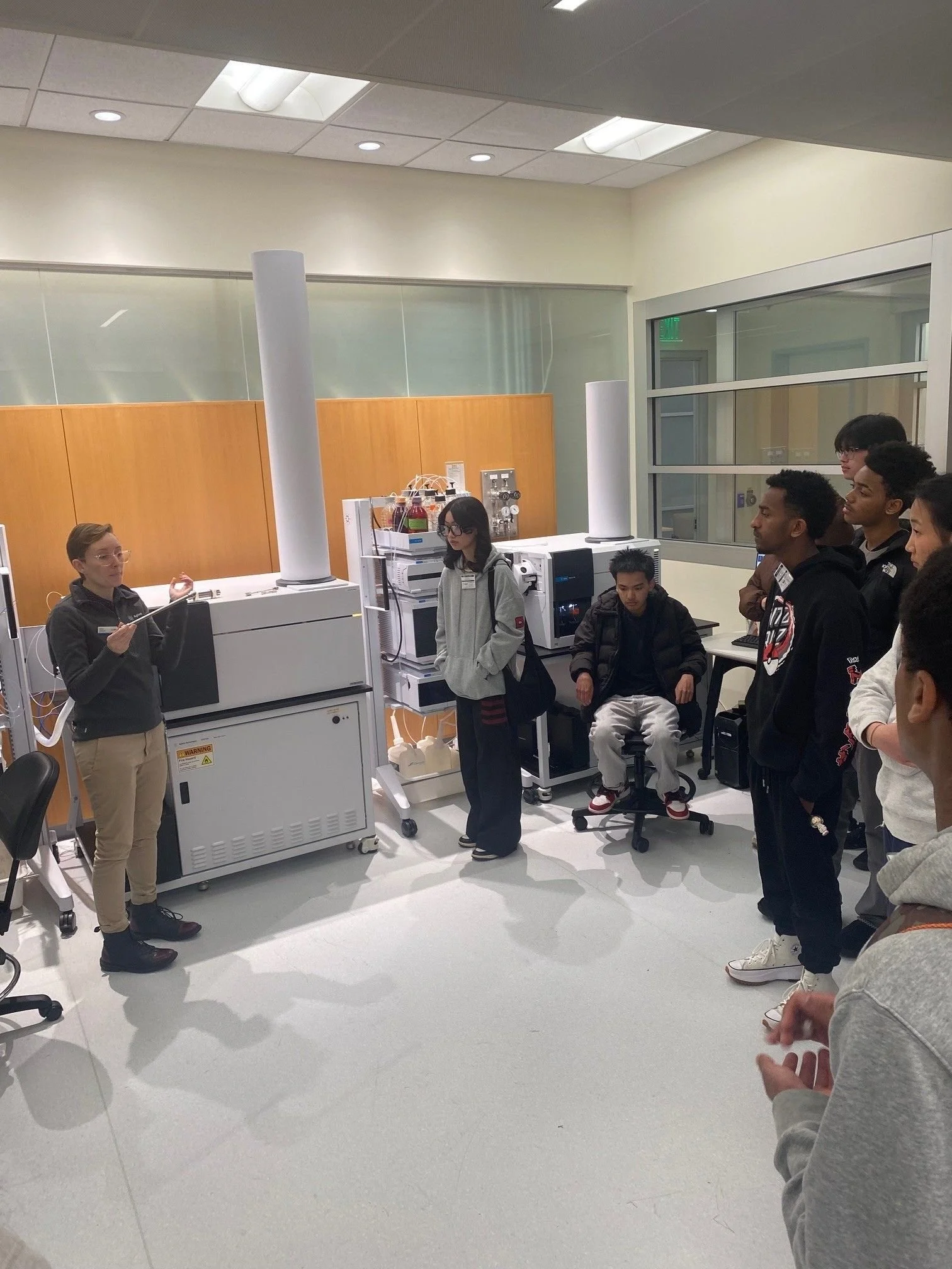 One of the most important messages shared by the panelists was the significance of collaboration. Even though Agilent's teams work in different departments, the ability to come together to brainstorm and create innovative solutions is essential to the company’s success. After the insightful presentation, the group provided a tour of their labs to see firsthand the scientific instruments and tools created and put to use in innovating the future. We were introduced to two scientists working in the labs named Ron and Sierra, who explained briefly the instruments purpose. Following the tour of the labs came a visit to the campus’s cafe for lunch. The relaxed atmosphere allowed us to continue their conversations with the panelists, ask more questions, and exchange ideas in a less formal setting. These casual interactions helped to solidify the takeaways from the presentation while giving the young people the chance to connect on a more personal level with those who make Agilent a globally recognized leader in science and sustainability.